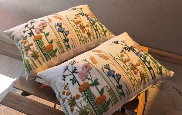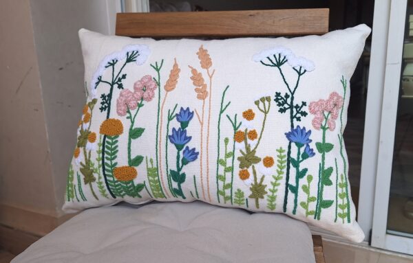 Ajoutez une touche de nature et de poésie à votre intérieur avec ce magnifique coussin brodé à la main.