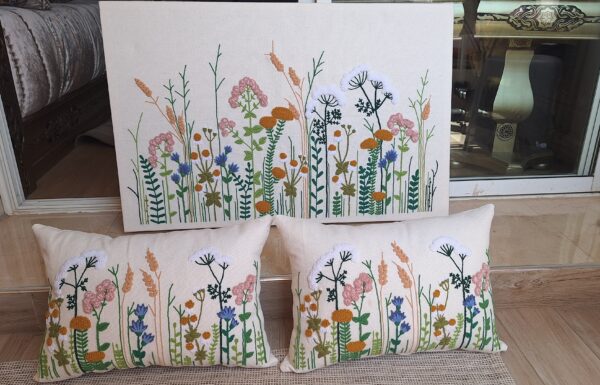 Chaque fleur, feuille et tige est minutieusement réalisée avec du fil coloré sur une toile de haute qualité.